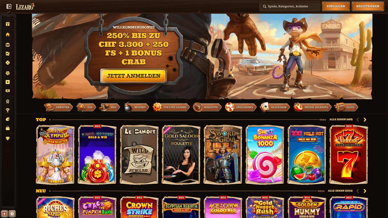 Lancé en 2025, Lizaro est une plateforme de jeux en ligne proposant plus de 10 000 jeux de fournisseurs de renom. Son thème Far West est unique, avec un reptile comme mascotte. La plateforme opère sous licence du Costa Rica et offre de nombreux moyens de paiement, y compris les cryptomonnaies. Dans cette évaluation complète, nous aborderons le bonus de bienvenue, la procédure d’inscription, les options de paiement, le catalogue de jeux, la compatibilité mobile et bien plus encore.